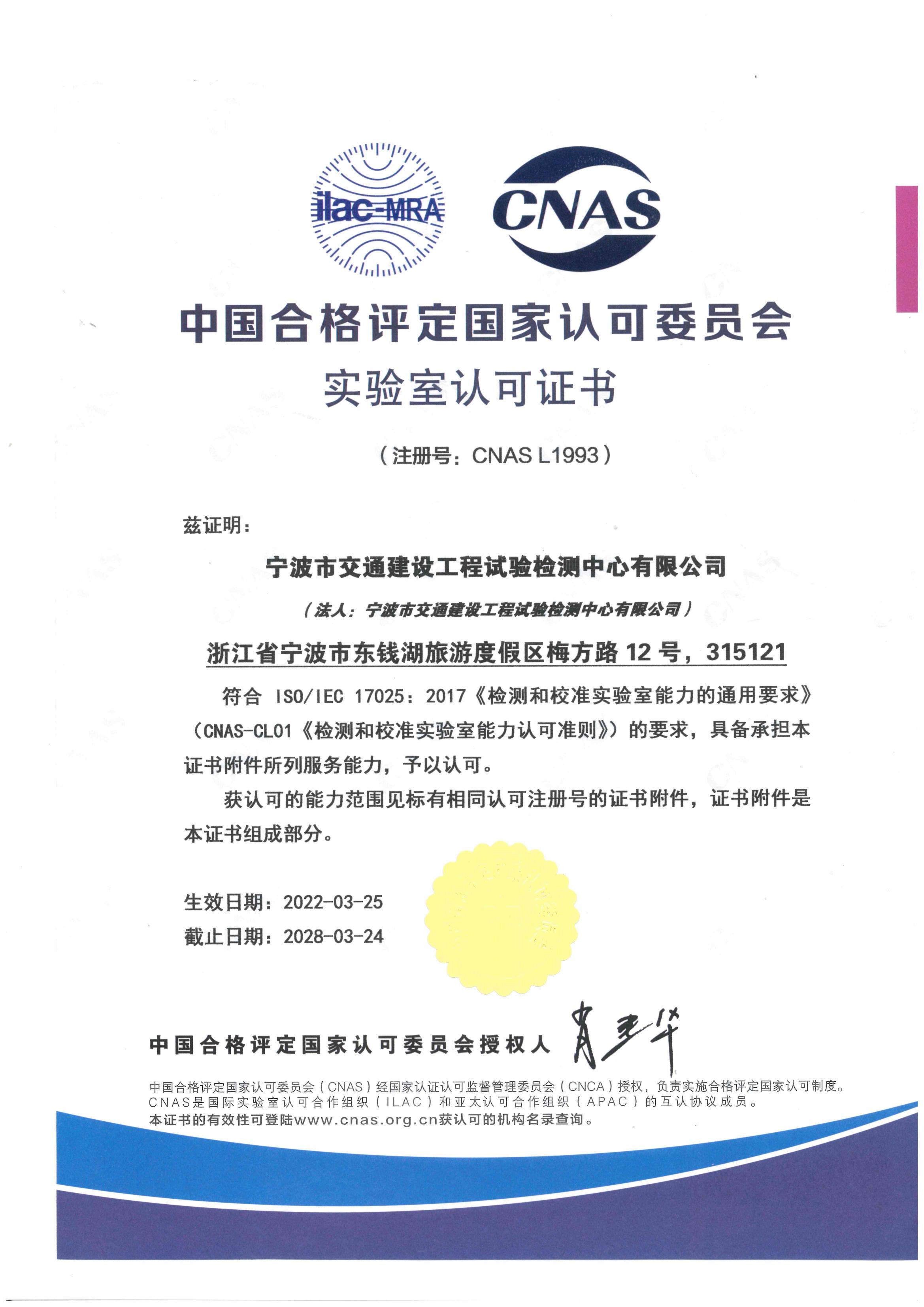 寧波市交通建設(shè)工程試驗(yàn)檢測(cè)中心有限公司