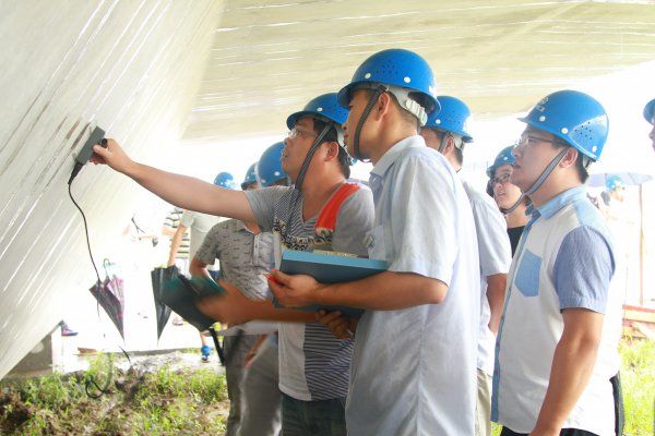 在鋼筋保護層厚度測試現(xiàn)場,檢測部主任助理陳繼盛演示了保護層測厚儀的規(guī)范操作流程。“測得準不準,關(guān)鍵一是儀器的靈敏度和精確性,二是準確定位鋼筋的位置,三是要注意人員的操作規(guī)范”陳繼盛如是說。隨后,雙方就橋梁梁板的鋼筋保護層厚度測試進行了技術(shù)層面的交流和探討。