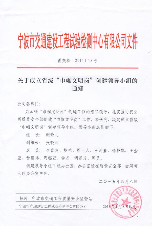 關(guān)于成立省級“巾幗文明崗”創(chuàng)建領(lǐng)導(dǎo)小組的通知