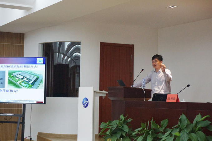 當(dāng)天下午在公司三樓會(huì)議室,由沈德建教授為公司員工做了題為“混凝土橋梁施工質(zhì)量掃描式?jīng)_擊回波檢測(cè)技術(shù)應(yīng)用前景”的專題講座。會(huì)上沈教授通過(guò)生動(dòng)的橋梁事故案例,分析了當(dāng)前橋梁設(shè)計(jì)、施工等方面存在的問(wèn)題,進(jìn)一步提出橋梁施工質(zhì)量控制的重要性,針對(duì)橋梁預(yù)應(yīng)力壓漿密實(shí)度及橋梁混凝土缺陷等問(wèn)題提出了新的檢測(cè)方法,并就其應(yīng)用前景進(jìn)行了闡述和展望。與會(huì)人員認(rèn)真聽(tīng)取了講座的內(nèi)容,并向沈教授請(qǐng)教了自身工作中遇到的技術(shù)難題,大家共同探討相關(guān)技術(shù)問(wèn)題,現(xiàn)場(chǎng)氣氛異常熱烈。